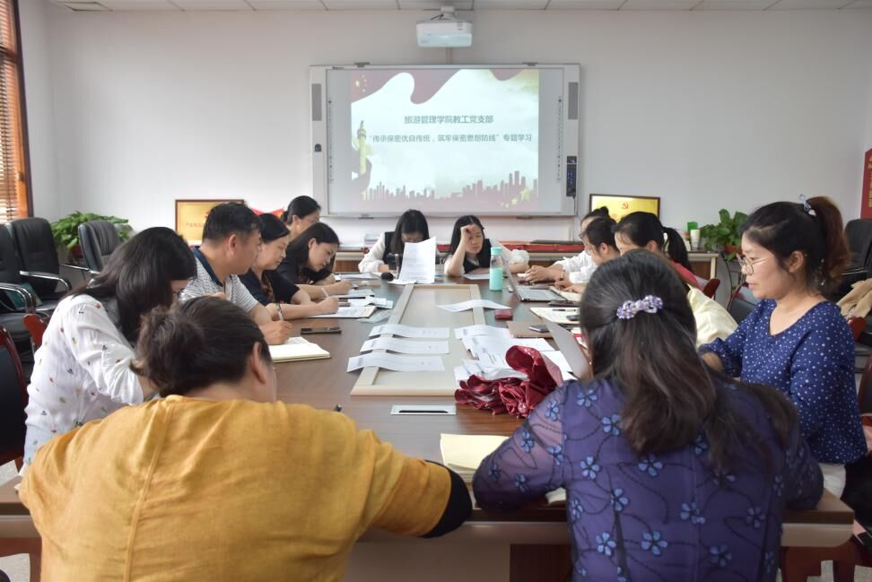 为夯实弘扬保密工作优良传统的思想基础,拓宽弘扬保密工作优良传统的基本路径,旅游管理学院教工党支部于5月13日下午13:00组织开展了“传承保密优良传统,筑牢保密思想防线”的专题学习。