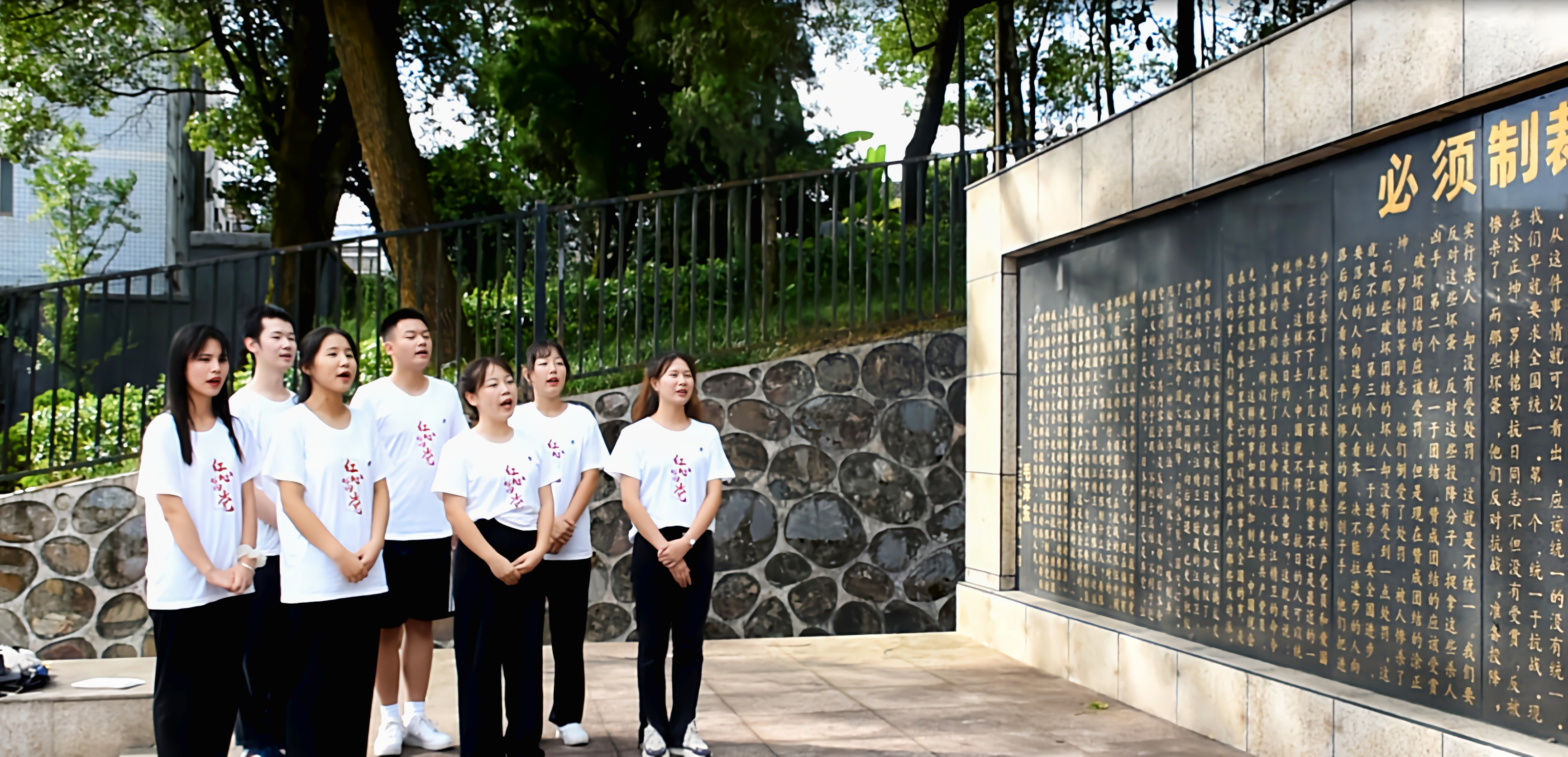在参观完平江惨案遗址后我们来到了加义烈士陵园,首先映入眼帘的是昭后亭,这里曾是曾金声、吴贺泉、罗梓铭、赵禄吟烈士被活埋牺牲的地方。在谢洁老师的带领下,团队成员共同学习了石碑上毛泽东同志作出的著名演说《必须制裁反动派》,并在烈士墓碑前重温入团誓词,一句句誓词,让心中的理想信念愈发坚定。