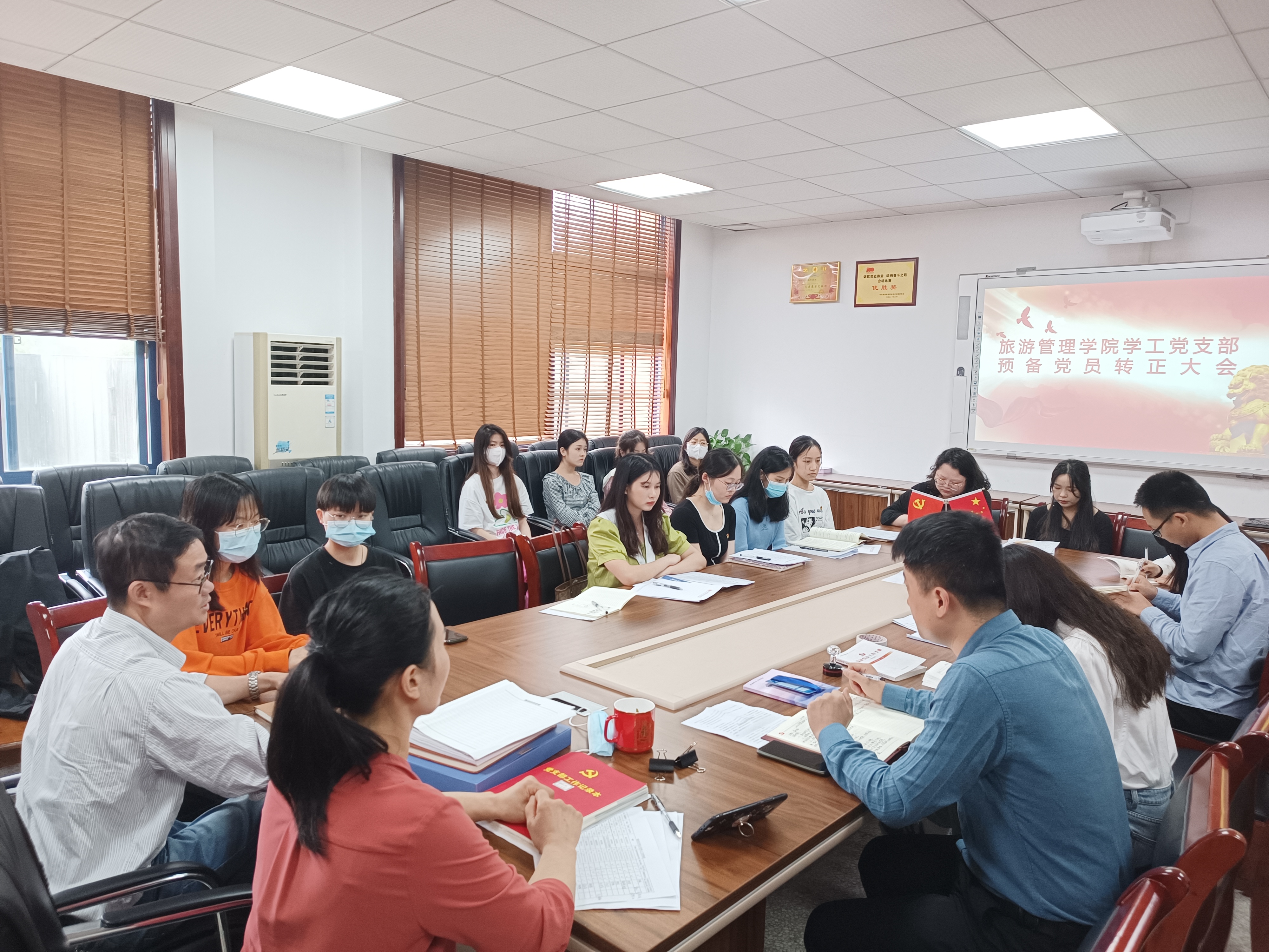 5月25日下午,旅游管理学院学工党支部在办公楼207室召开了2022年讨论预备党员转正支部大会,会议由学工党支部书记彭旭同志主持。