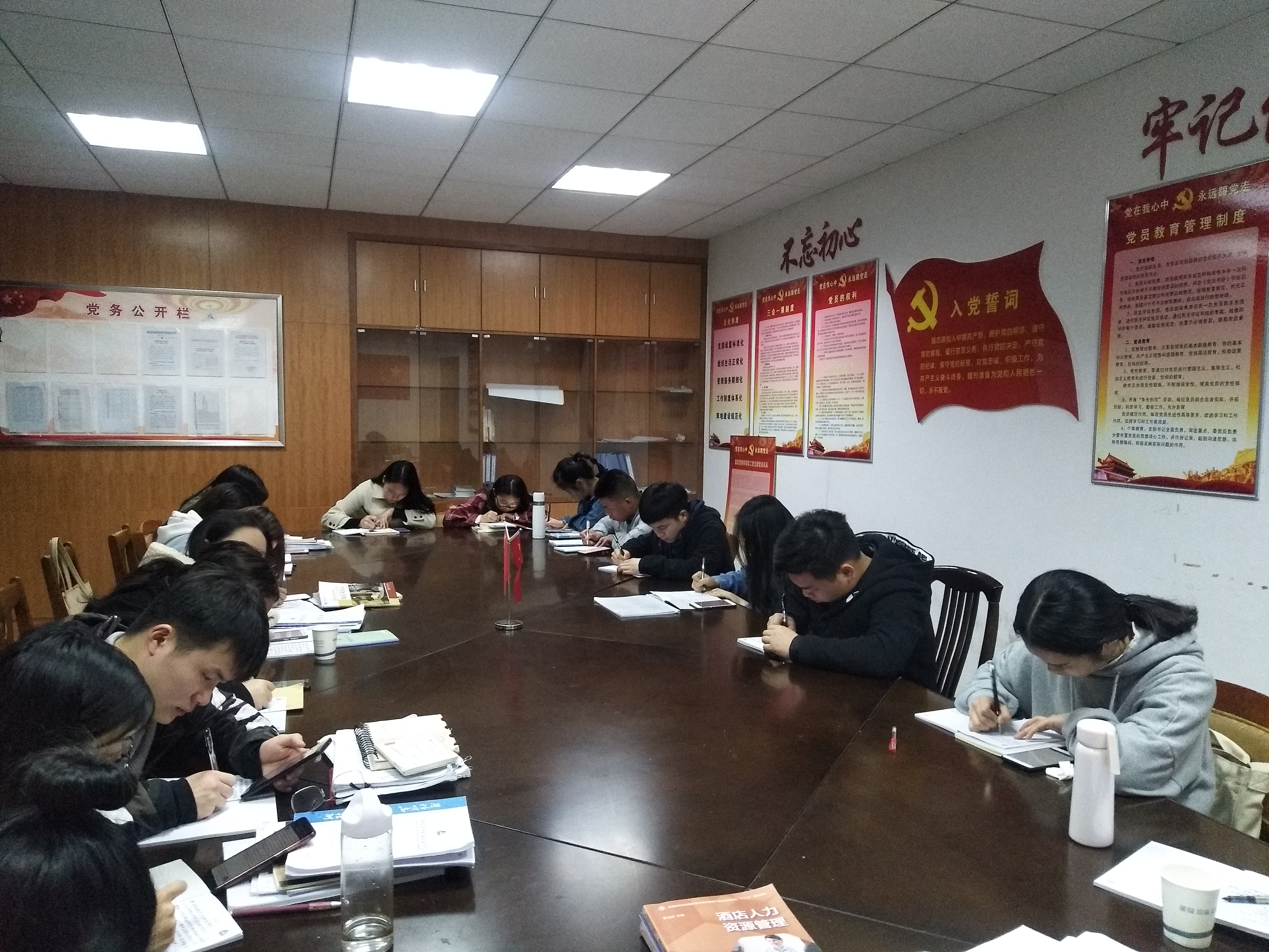 会议第三项议程,欧阳序华同志总结发言,希望本次主题党日活动,大家要牢记自己的使命,向雷锋同志学习,认真践行为人民服务的宗旨,为同学们服务,为旅管学院服务,为实现我们的中国梦而不懈奋斗。另外,从上周四开始,每一名党员同志的寝室都挂上了监督牌,大家要牢记自己的身份,时刻提醒自己:我是一名党员,树立先锋模范,要起带头作用,先从寝室卫生抓起,从自身思想道德抓起,争先创优。