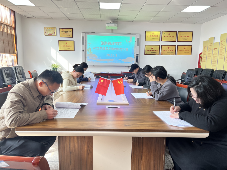 为加强辅导员队伍建设,助力学院打造出一支政治强、业务精、纪律严、作风正的高素质辅导员队伍,旅游管理学院2025年1月13日在崇德楼207会议室成功开展辅导员素质能力大赛笔试,学院全体专职辅导员参加考试。