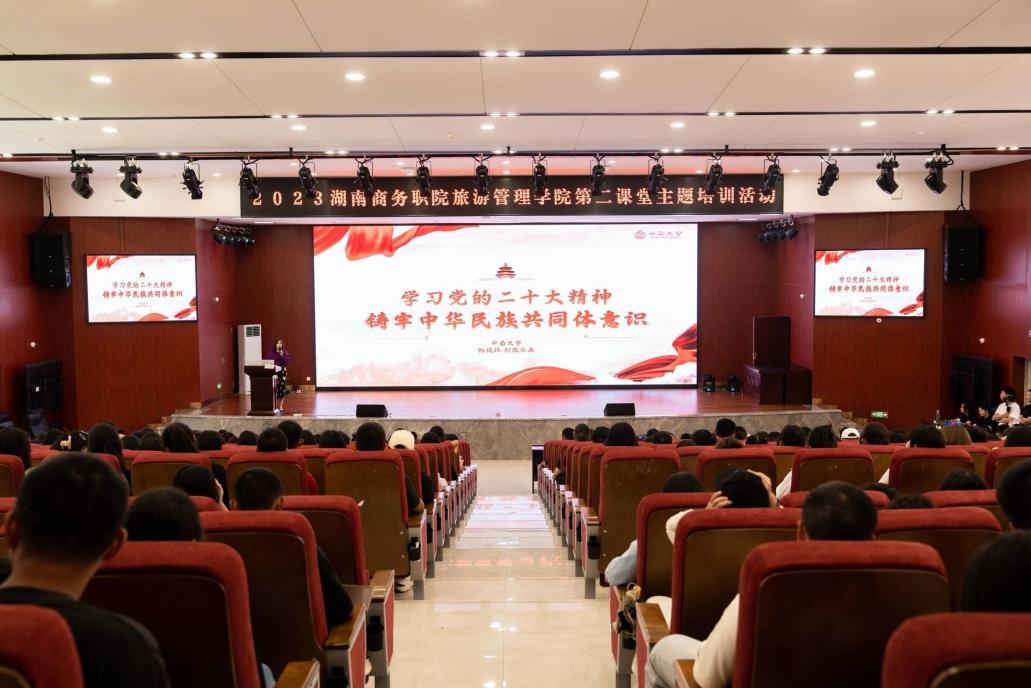 为学习贯彻习近平总书记关于加强和改进民族工作的重要思想,加深学生对民族文化的认识,铸牢中华民族共同体意识,9月19日下午,旅游管理学院邀请了中南大学学生工作部(处)少数民族学生事务办公室主任、“56度中南工作室”主持人帕提玛·柯孜尔亚老师开展以“学习党的二十大精神,铸牢中华民族共同体意识”为主题的第二课堂培训活动。活动由学院党总支副书记欧阳序华主持,全体辅导员及2023级新生参加。