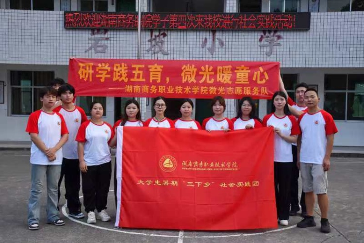2024年7月7日,湖南省商务职业技术学院旅游管理学院微光志愿服务队来到安化县东坪镇岩坡小学,开展“研学践五育,微光暖童心”为主题的“三下乡”社会实践活动,帮助农村小学生远离手机,快乐一“夏”。