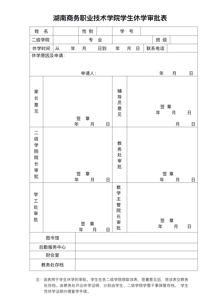 湖南商务职业技术学院学生休学审批表