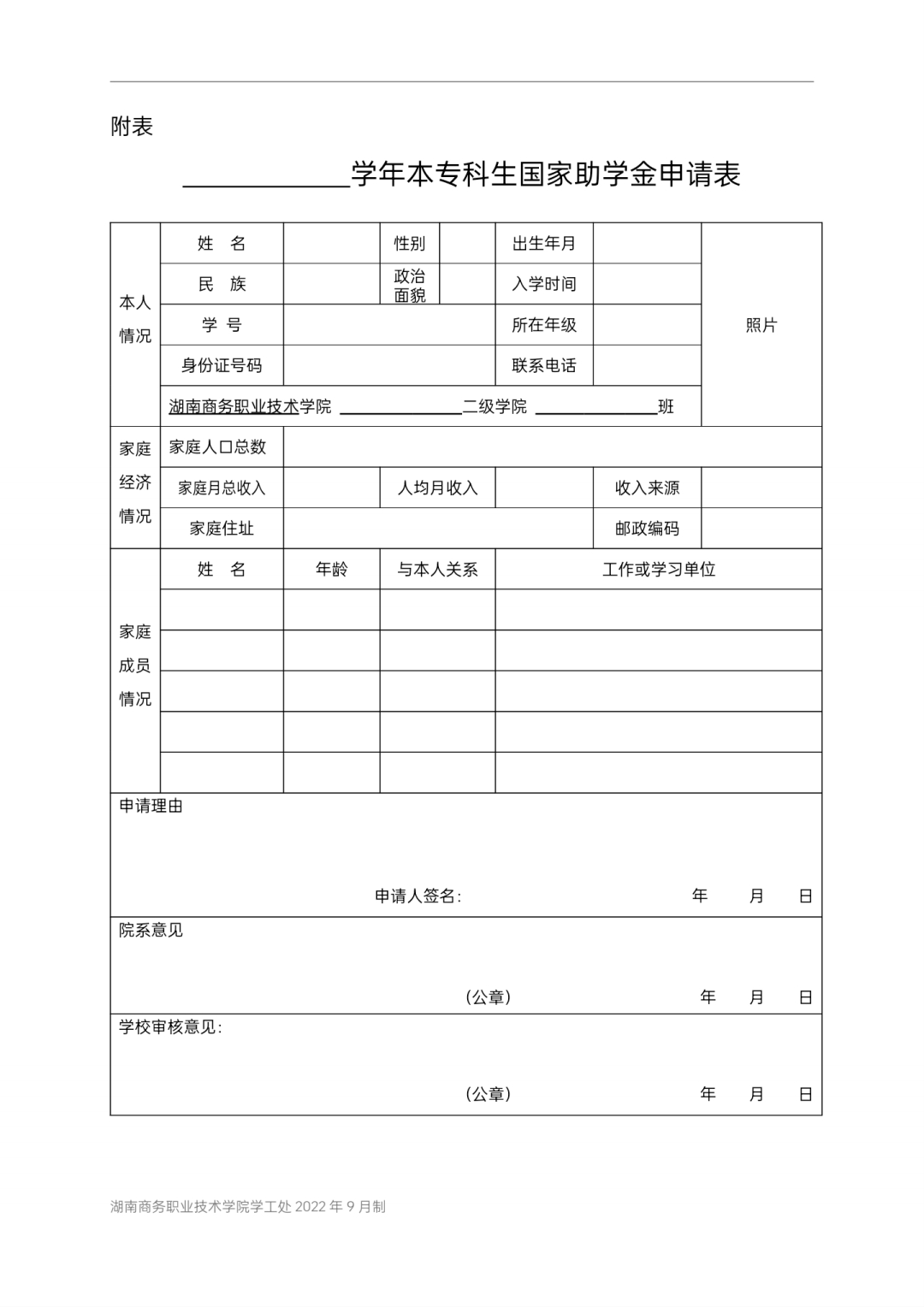 ( — 学年)国家励志奖学金申请审批表