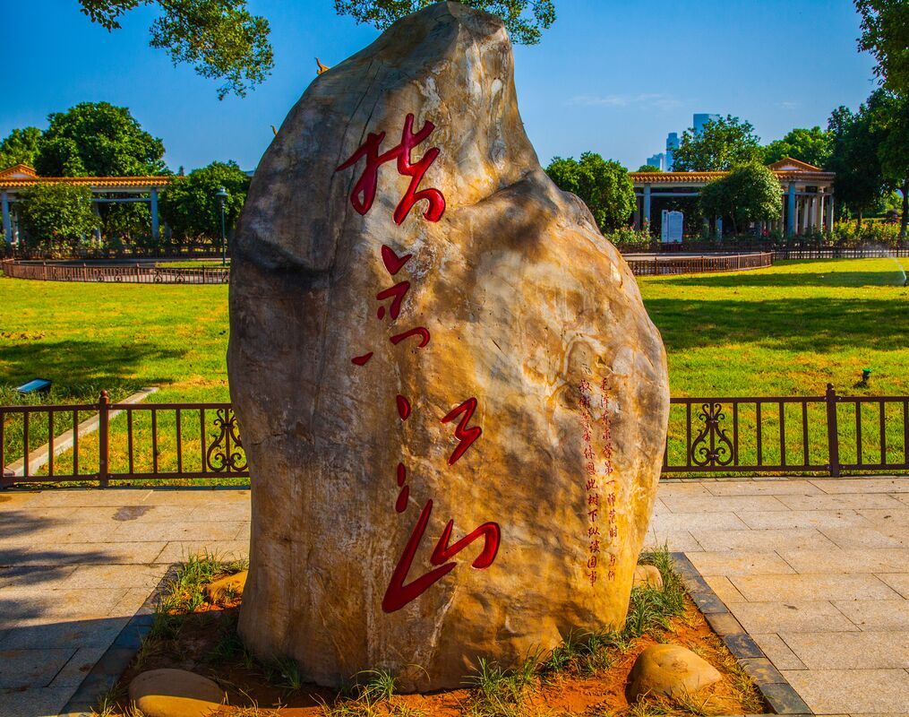 位于核心景区入口处南广场,诗词碑采用天然石制作,以毛泽东1961年10月16日手书水印木刻《沁园春长沙》复制稿制作而成,整个诗词字体洒脱,奔放,线条简单,形态自然。