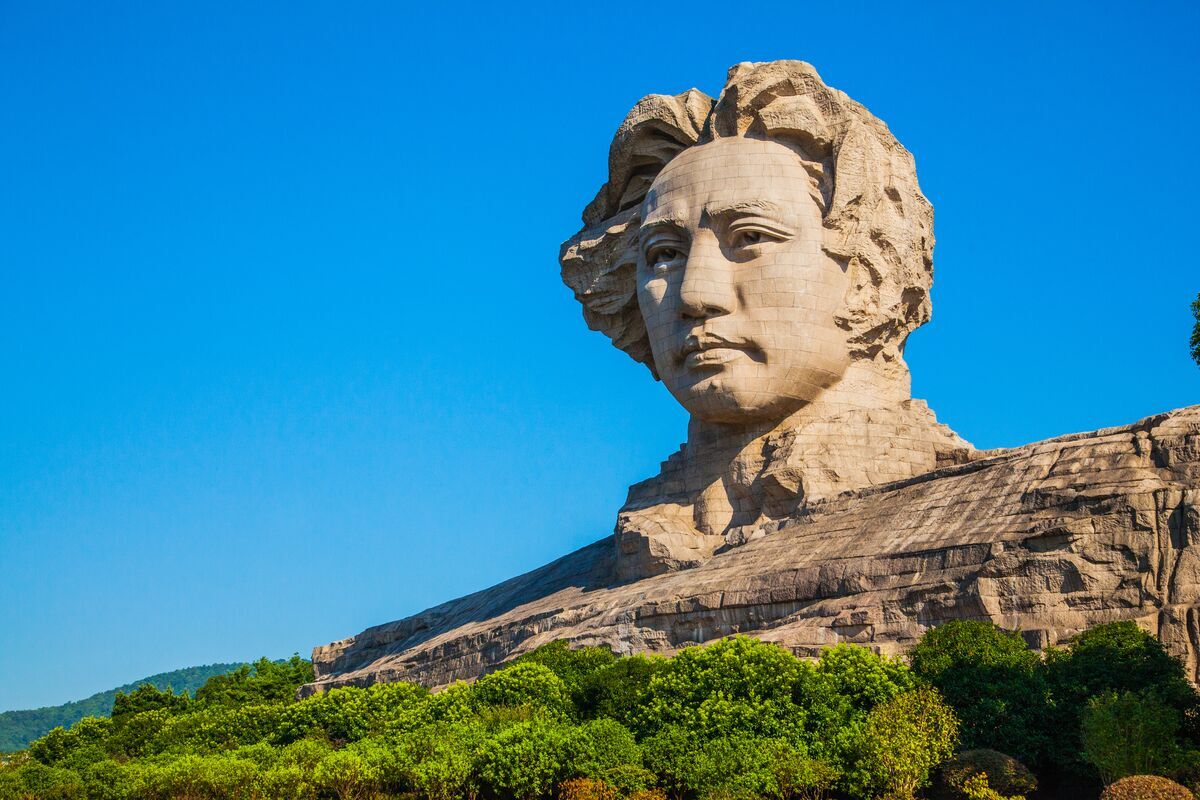 毛泽东艺术雕塑位于望江亭以北,面向东南,以1925年青年时期毛泽东形象为基础,富有强烈的视觉效果和艺术感染力,与橘子洲风景区自然景观完美结合,突出表现了伟人青年时代胸怀大志、风华正貌的气概。雕塑由广州美术学院进行艺术创作,黎明院长主创。雕塑高32米,长83米,宽41米,是目前国内最大的伟人艺术雕像。雕塑基座部分为毛泽东纪念展厅和陈列室,面积约2000平方米,用于收集和陈列原景区大理石制诗词碑与毛泽东及其他在湘早期革命志士有关的各种历史文物和经典绘画作品、雕塑作品、摄影作品等。