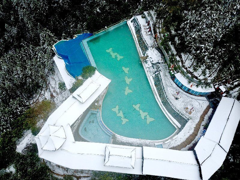 雪峰山枫香瑶寨占地面积20000平米,建筑面积4000平米,民俗活动广场750平米。枫香瑶寨一带巨枫成林,春夏莺歌燕舞,深秋霜叶如火,蔚为壮观。泳池建在古寨的右上角,池塘呈半圆形,池水来自响水洞,水质清甜甘爽,饮之可以延年益寿,浴之能够美肌健肤,冬暖夏凉,四季恒温。