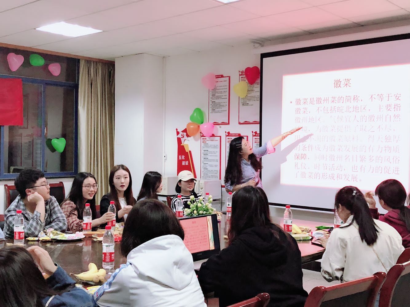不仅如此,许若晨老师还给同学们提出了八大菜系是哪八大,八大菜系的所属地以及八大菜系哪个菜系传播范围最广三个问题,引发了同学们激烈的对话。在会议中许若晨老师说道:“食是民之根本,虽然这个话题看似普通却又富有内涵”。
