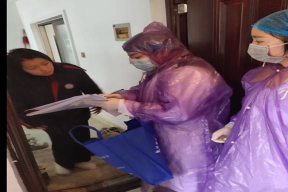 从大年初三开始,劳璇同学就成为了奔走在防控一线社区人员中的一员,每日早上月亮还未完全隐匿起来,劳璇同学就早早起床去服务站点执勤,为来往的车辆和行人进行体温测量,切实保障分配网格中的人员安全,对于外来人员,她积极组织外来人员登记活动,详细询问相关信息并严格把关,发放临时通行证,仔细做好每一件事。