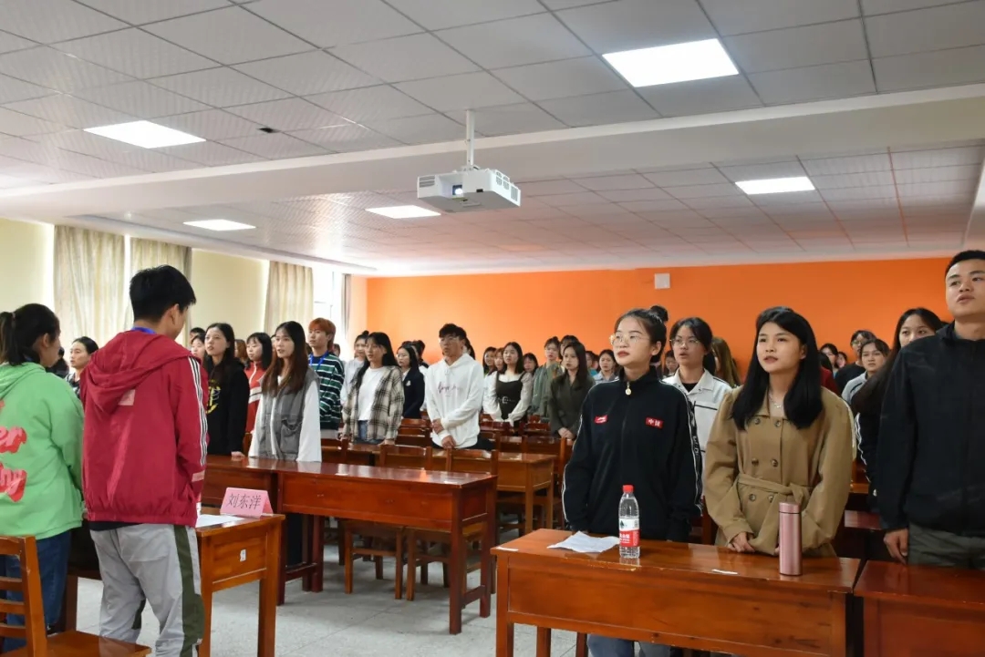 大会在主持人介绍完基本流程之后正式拉开帷幕,先是全体成员庄严起立奏唱共青团团歌。礼毕之后,由学院领导以及团学分会主席团成员为优秀德育班级、优秀个人德育标兵、德育工作最佳奉献奖、素质拓展分子以及文明大学生进行颁奖。随后,由各奖项的获奖代表人发表获奖感言。