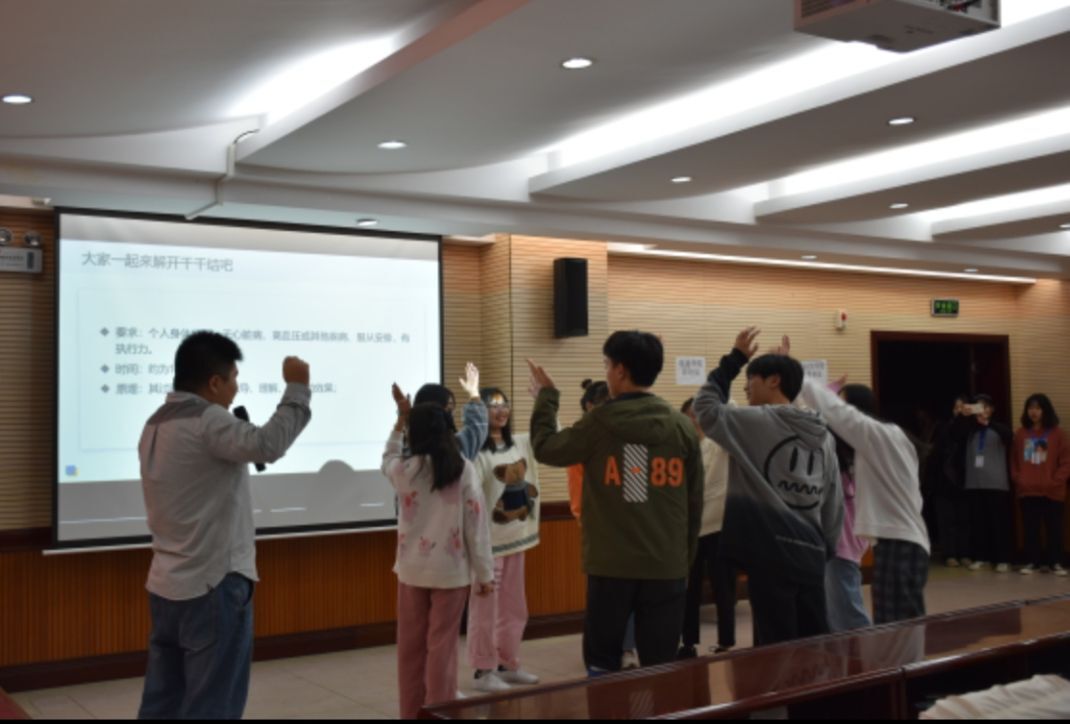 此次讲座由湖南农业大学的戴理波老师主讲,围绕着“为什么要关注心理健康”“为什么要学习心理健康知识”“怎样定义心理健康”以及“如何培养理性平和的社会心态”等方面的内容展开。在讲座中,戴老师针对大学生普遍存在的心理问题,建议同学们要进行积极的情绪管理,正确面对挫折与压力。戴老师的讲座融知识性与趣味性为一体,他还以解开千千结游戏的方式,让同学们认识到了团队合作和独立思考的重要性。