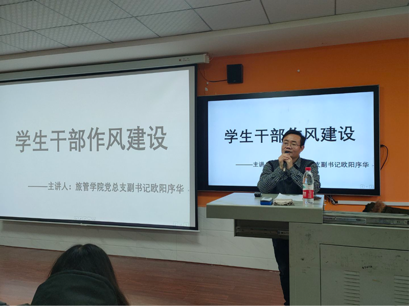 本次培训共有五次课,主讲人分别为我院的党总支书记张丽萍、党总支副书记欧阳序华、学工党支部书记谢洁、辅导员徐薇和范焕。在本次培训中,老师们分别从德行与担当、时间规划、遇见更好的自己、干部作风建设以及干部服务意识等五个方面展开培训,培养学生干部责任担当意识、服务意识及纪律观念,帮助学生加强职业规划和时间规划,引导学生做一名优秀的学生干部。