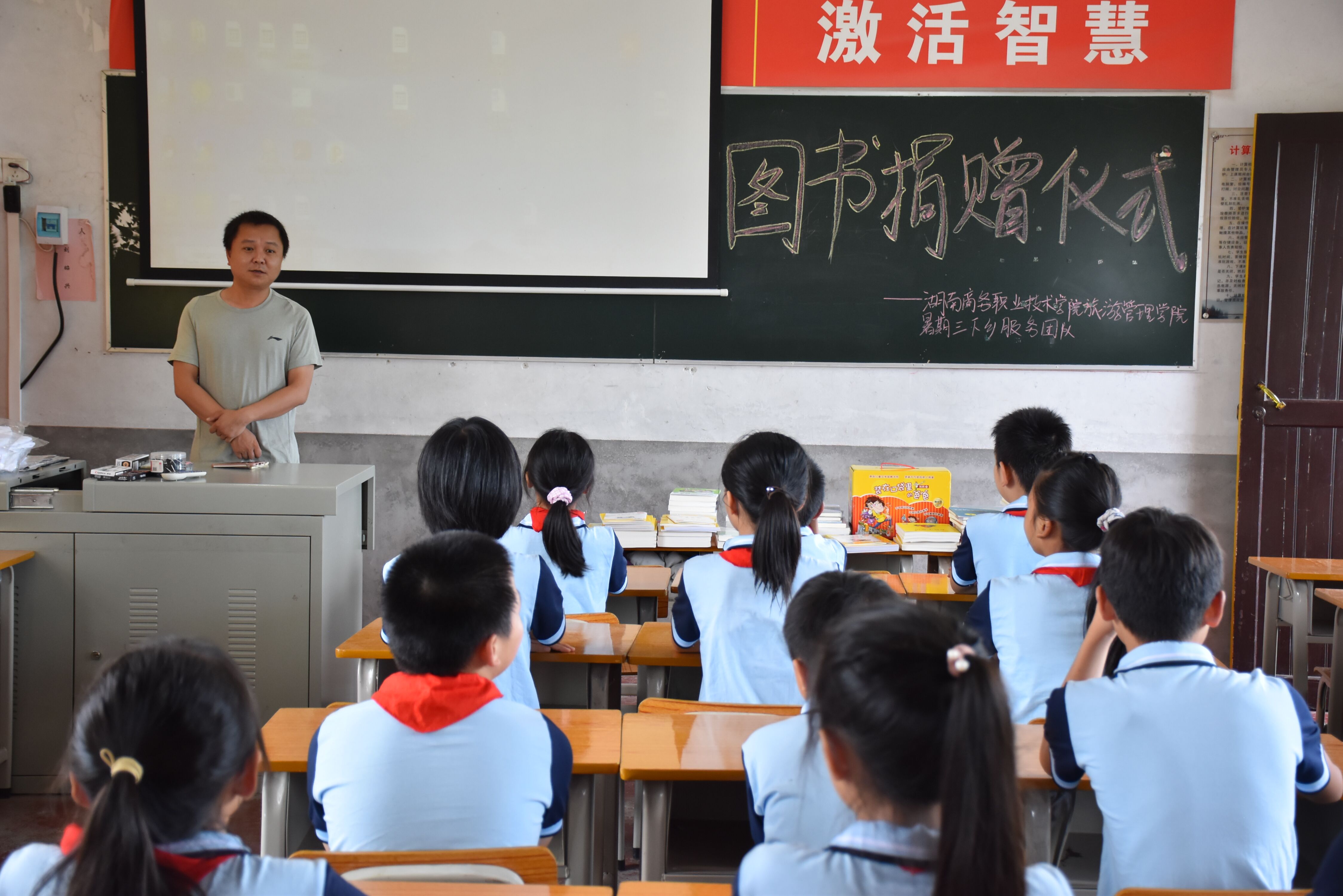 随后图书捐赠仪式顺利开展。书籍作为知识的载体,它能够启迪孩子们的智慧,拓宽视野。扬起智慧的风帆,遨游知识的海洋。为了传达对孩子们的关爱和期望,范焕老师在为孩子们分发着书籍的同时,也鼓励他们要好好学习,健康成长。台下是一双双渴望知识的眼睛,少先队员用一个个敬礼表达着感恩之情。赠人玫瑰,手留余香。捐出一本书,奉献一颗心,将希望的种子播种在孩子们的心里。望我们绵薄之力能为孩子们的成长增添一抹亮色,丰富他们的知识,给他们带去学习的快乐和收获知识的喜悦。漫漫长路,我们同孩子们一起为梦想努力奔跑,为祖国的灿烂明天共同奋斗!