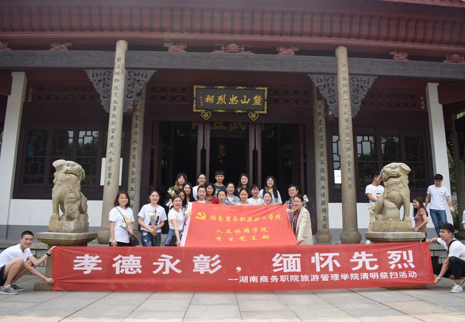 踏访烈士的英勇足迹,缅怀前辈激情燃烧的岁月,感受英雄的革命激情,激发青年党员、团员的爱国情怀,进一步继承和发扬中华民族传统“孝文化”。2018年4月3日,清明节到来之际,在旅游管理学院党总支副书记黄铖同志的统筹部署下,学生党支部书记欧阳序华老师,辅导员代表吴丹老师,徐薇老师组织主席团,预备党员,部分学生代表到岳麓山抗战文化园参加祭扫革命先烈的活动,传承革命先辈的遗志。