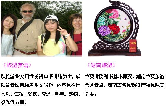 在2013年湖南省职业院校中英文导游技能赛上获一等奖三名、二等奖名,同年代表湖南省参加国家职业院校学生技能赛获得三个二等奖,创湖南省最好成绩。2014年再创佳绩,获省职业院校技能赛中英文导游赛一等奖一个,二等奖两个,三等奖一个。
