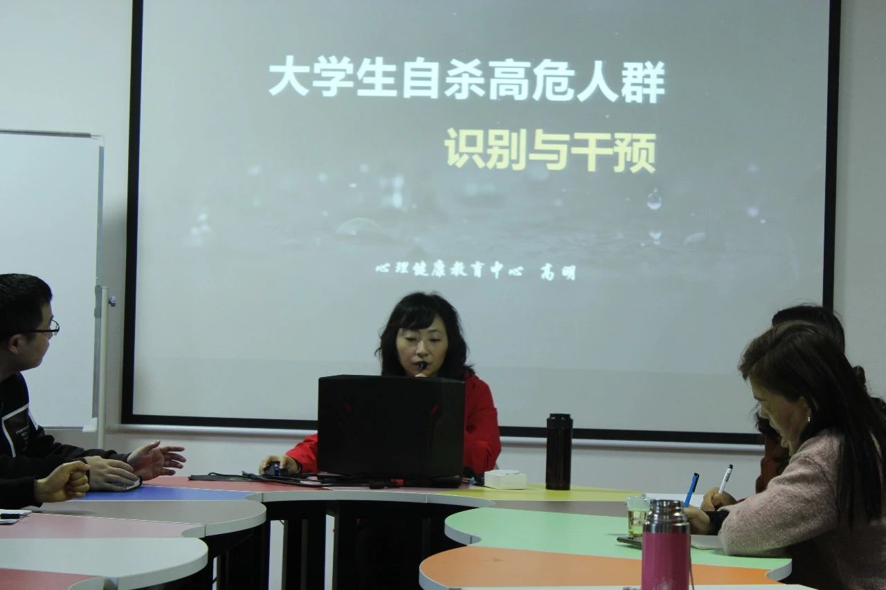 2019年4月8日上午10:30- 12:00以及4月10日上午8:30-10:00在我校心理健康教育中心一楼会议室召开此次培训。主讲老师是心理健康教育中心的高明老师,参加此次会议的人员有:心理健康老师、宿管员和后勤服务中心工作人员。此次培训主题为“大学生自杀高危人群的识别与干预技术”。