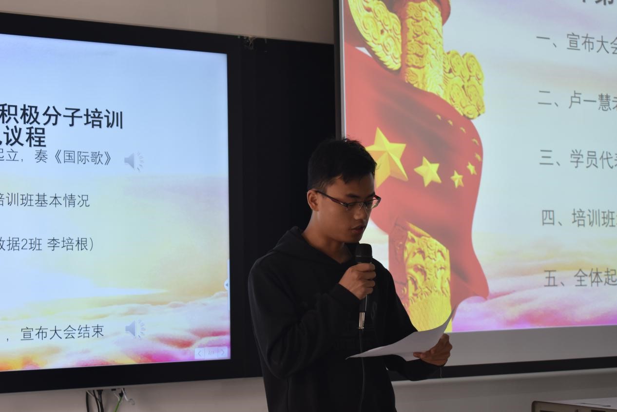 仪式第一项,卢一慧老师对本期培训班的工作安排、培训班的意义、以及对入党积极分子考核方式和标准等方面向学员们进行介绍;并强调了各注意事项。