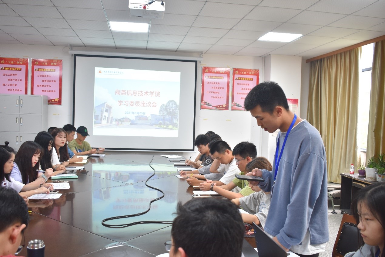 本网讯(学习部赵江秀)2021年5月25日下午16:00,商务信息技术学院在办公楼219开展了2021年上学期信息学院学习委员座谈会。本次座谈会的参会人员有党委委员、商务信息技术学院院长皮卫,商务信息技术学院副院长谢林勇,教学办唐思老师,以及学习部成员和2019级、2020级全体学习委员。座谈会由谢院长主持。