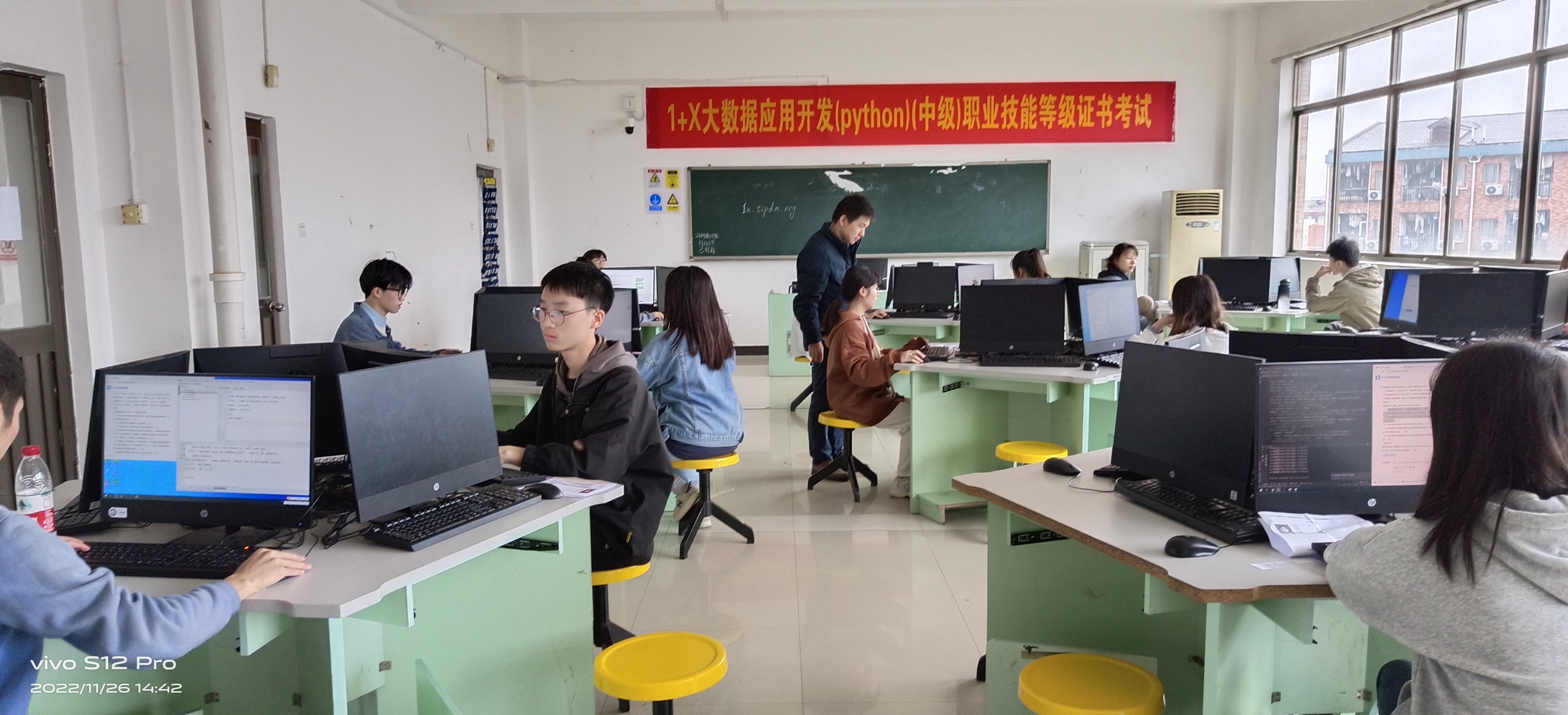 为进一步贯彻落实《国家职业教育改革实施方案》,推进“1+X”证书制度试点工作,2022年11月24-29日,商务信息技术学院举行“1+X”Java Web应用开发职业技能等级、 “1+X”大数据应用开发(python)(中级)职业技能等级和“1+X”网络系统建设与运维(中级)职业技能等级考试,参考学生共计60人。