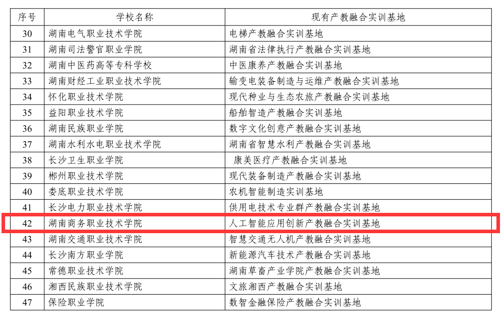 为推动职业教育与区域产业紧密对接、有效服务湖南经济社会高质量发展,湖南省教育厅、省发改委等五部门联合发布了《关于实施职业教育“楚怡”行动的通知》。12月1日,湖南省教育厅公布了湖南省“楚怡”产教融合实训基地建设单位名单,我院申报的人工智能应用创新产教融合实训基地成功立项。