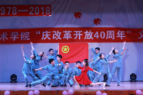 一首气势恢宏、清新深情的大合唱《春天的故事》拉开了晚会的序幕,将全场师生瞬间带入如史诗般壮丽的改革开放宏伟时空。随后,激情澎湃的《改革开放40周年》诗歌朗诵抒发了对祖国改革开放40年硕果累累的骄傲自豪,真诚表达了对改革开放总设计师小平同志的崇敬缅怀。信息技术文娱骨干团语言组带来的小品《改革开放之学习贯彻十九大》,以夸张的动作、幽默的语言、有趣的情节、形象的演出不时博得全场热烈的掌声。舞蹈《映山红》、情景剧《决战平安城》和《改革回忆录》、歌曲《七子之歌+东方之珠》,带领师生们重温了硝烟弥漫的战争岁月和改革开放的新生活,激发了大学生求实创新励志图强的爱国之情。《青苹果乐园》等节目通过各自独特的表演形式和风格充分展现了在改革开放大潮中不同时代青年激情昂扬的青春风采。晚会由一首学生党支部大合唱《我爱你,中国》压轴,热情讴歌了祖国的宏伟蓝图,表达了大学生对祖国的崇高敬意和赞美之情。“广大青年要坚定理想信念,志存高远,脚踏实地,勇做时代的弄潮儿,在实现中国梦的生动实践中放飞青春梦想,在为人民利益的不懈奋斗中书写人生华章”,晚会在习近平总书记对青年的深情寄语中圆满落幕。