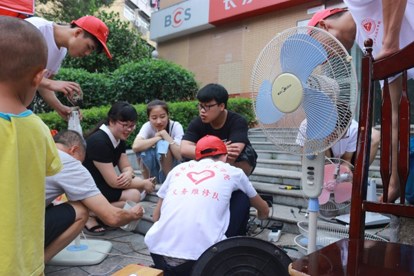 义务维修活动受到了社区居民的热烈欢迎,送修者络绎不绝。志愿者们共收取需维修电器130余件,其中修好复原100余件,主要是电吹风、电风扇、排插、电热水壶等家用小电器。志愿者们分工合作,组织有序开展,先由专人登记送修电器名称、故障、送修人及联系方式,再由专业维修人员进行检测维修,最后登记维修情况并反馈给居民。天气炎热,志愿者们的爱心更热。志愿者们不畏酷暑,头顶骄阳,汗流浃背的坚持维修,赢得了社区居民的一致好评。看到居民们满意的面容,队员们的内心满是成就感。活动期间,志愿者们始终热情高涨,心中满是老人的期盼和孩子渴望的眼神,骄阳酷暑坚守义务维修。
