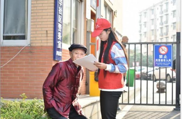 宣传组成员为社区老人讲解防骗知识