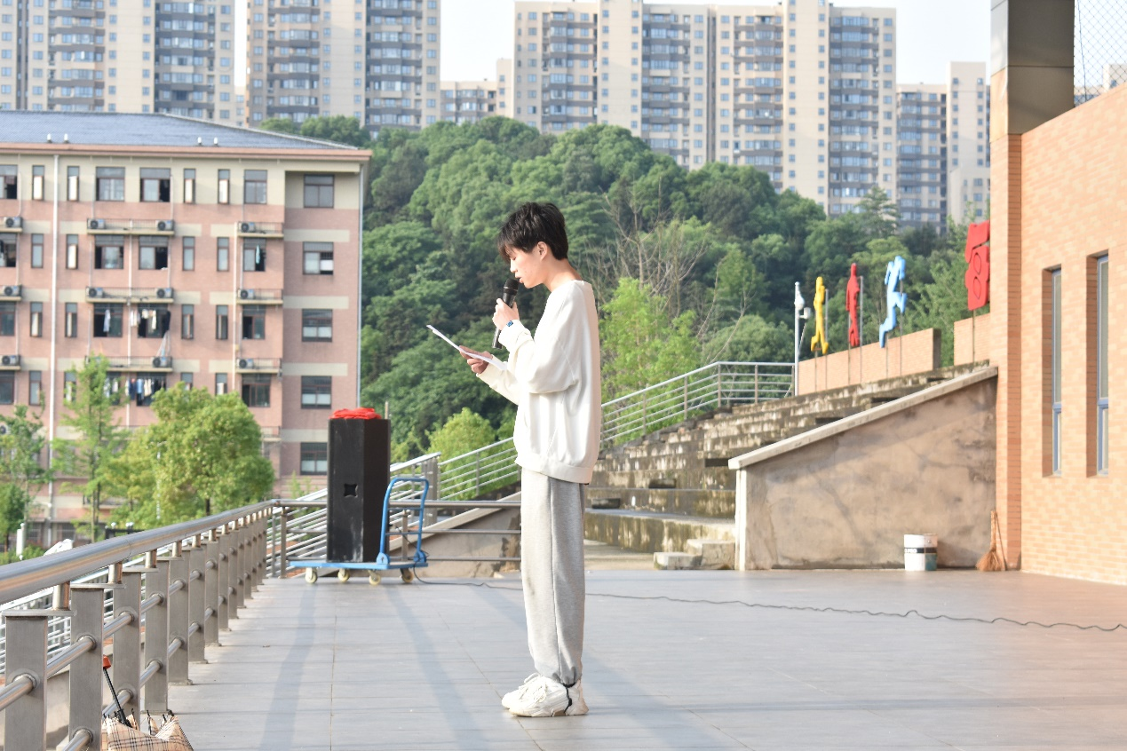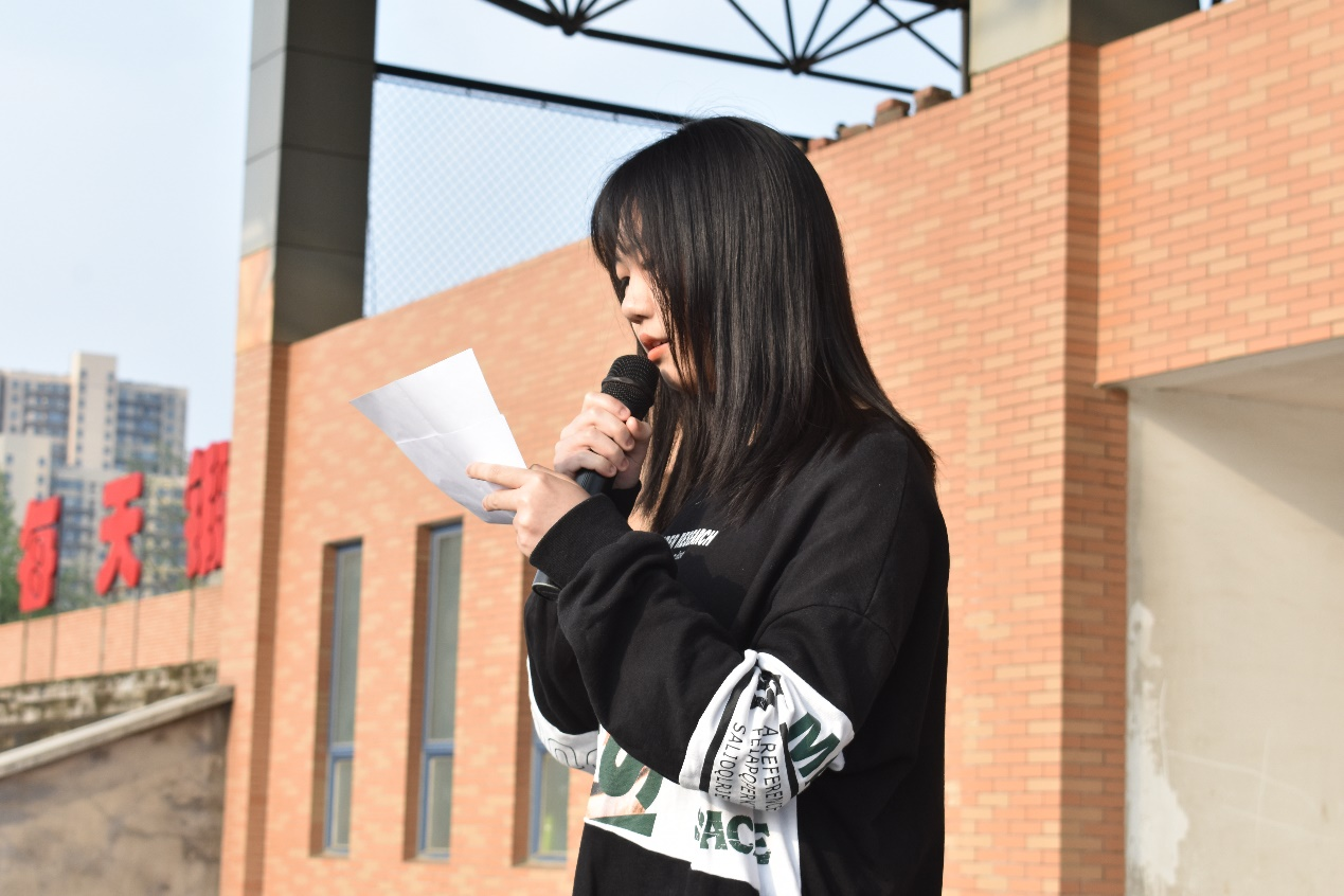 其次,学生代表20软件1班马梦阳发言,她认为作为当代青年:一、应该认真学习专业知识,提高自身素养。二、应该明立明确目标。三、应该努力、坚持、自律。锻炼使我们健康,学习让我们智慧,合作给我们力量,勤勉促我们成长。