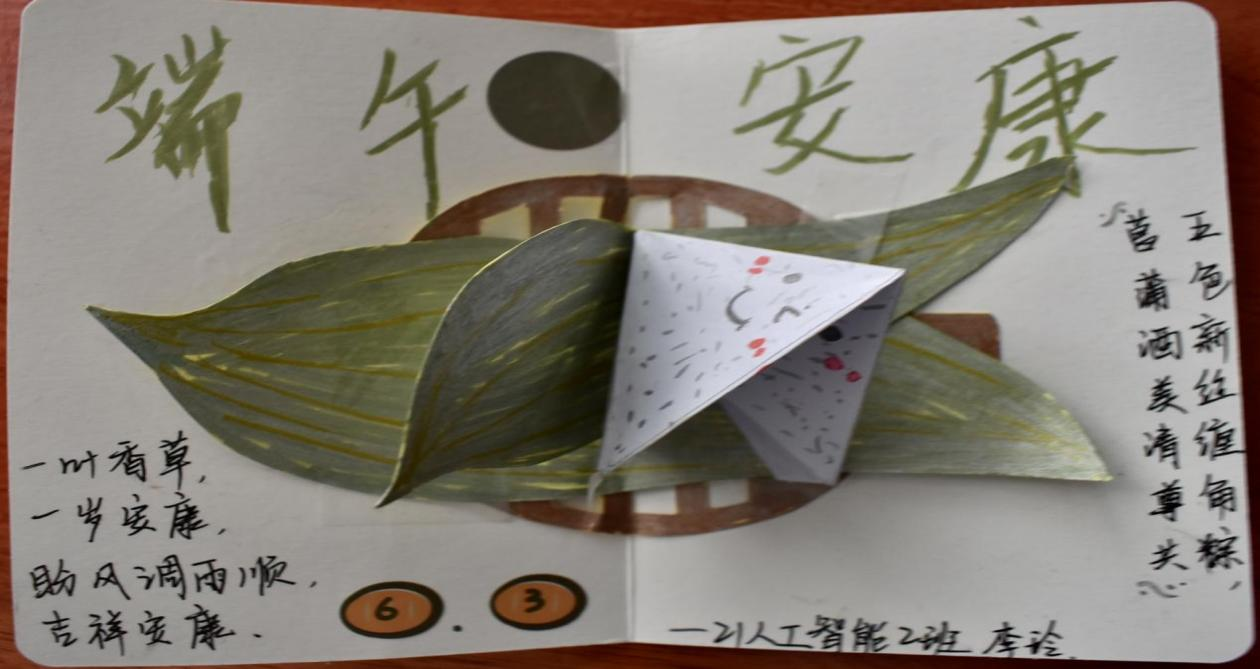 活动开展期间,参赛选手们通过上网或翻阅书籍查询资料,了解端午节的各种习俗,结合自己的理解以绘画和撰写的方式完成贺卡。贺卡的制作不仅让同学们感受到端午节的文化内涵和传统佳节的魅力,同时也对端午节有更加深刻的认识。
