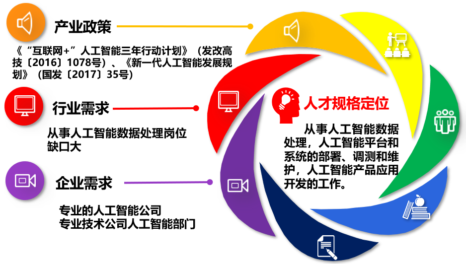 本专业适应经济社会转型升级及“互联网+”“智能+”等新业态蓬勃发展需要,培养理想信念坚定、德智体美劳全面发展,具有较强的数字技术基础、数据思维、美学素养和良好的职业道德及创新创业能力,传承敢为人先、经世致用的精益求精的工匠精神,掌握人工智能的基础理论、基础知识和基本技能与方法,具备智能信息处理、智能行为交互和智能集成方面开发和应用的基本能力,面向商务、交通、物流、工业控制、农业、互联网等领域,能够从事人工智能数据处理,人工智能平台和系统的部署、调测和维护,人工智能产品应用开发的全面发展的复合型技术技能人才。