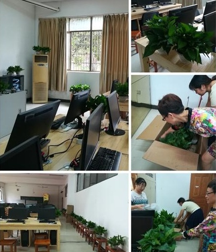 9月26日上午,50盆绿色植物——绿萝被整齐划一的摆在了104机房的各个角落,从接到师生的反馈到最后的处理只有短短的2天时间。一直以来,实训与信息中心都是以“为师生服务、为教学服务”的宗旨为导向,从寒暑假的机房改造到晚上、周末的频繁加班,都是为了能给老师、学生提供更好的实践性教学场地。