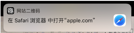2. 扫描之后,选择在Safari浏览器中打开“apple.com”: