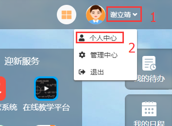 在信息门户界面的右上角,找到自己的姓名,并点击姓名->个人中心,可以在接下来打开的界面中修改密码