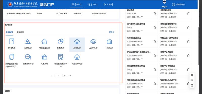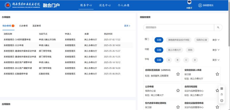 此时退出同一身份认证平台,再次进入融合门户即可直接进入下图中展示的门户主页面
