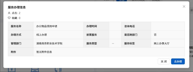 已下图为例,点击“办理”按钮,跳转到申请界面