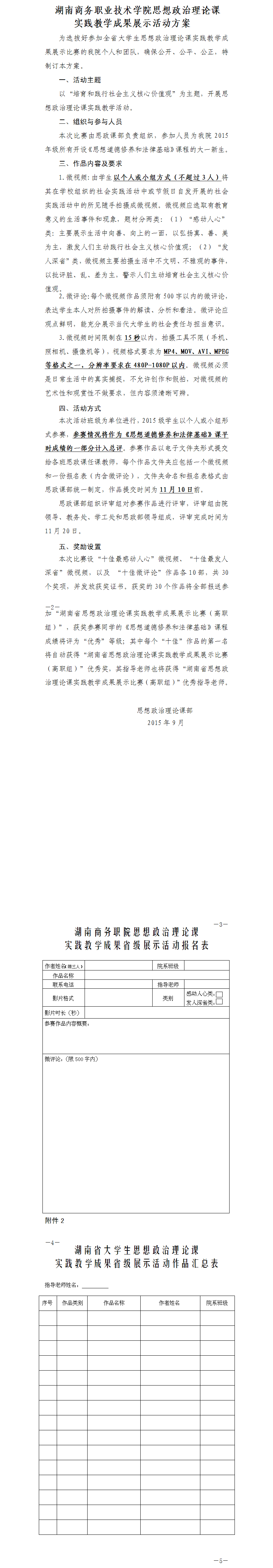 为落实省高工委、教育厅《关于开展湖南省大学生思想政治理论课德育实践成果展示竞赛的通知》文件要求,进一步激发大学生政治理论学习的积极性,加大思想政治理论课教学方法改革的力度,我院于10月-11月开展了学院大学生思想政治理论课德育实践成果展示竞赛。