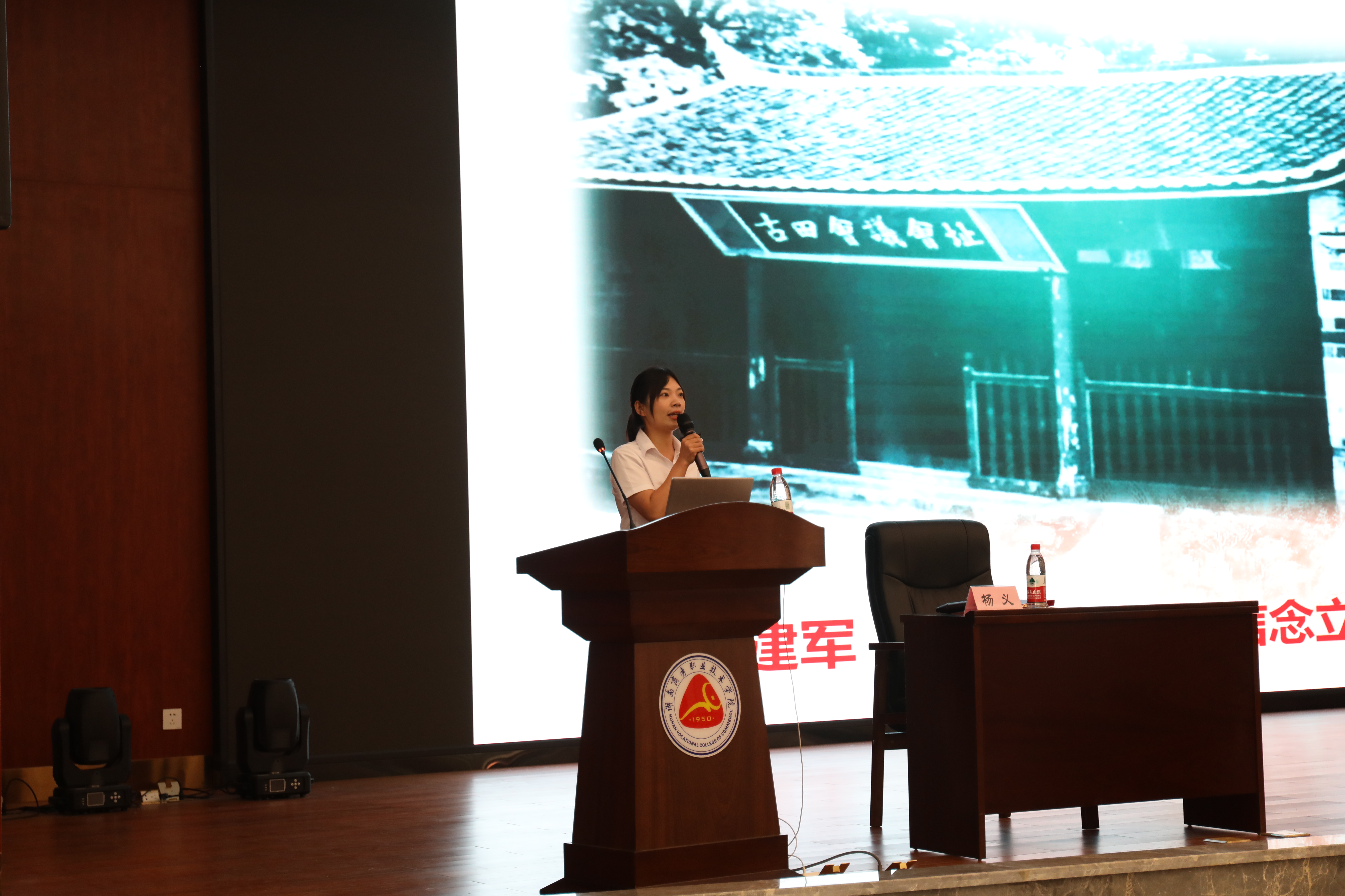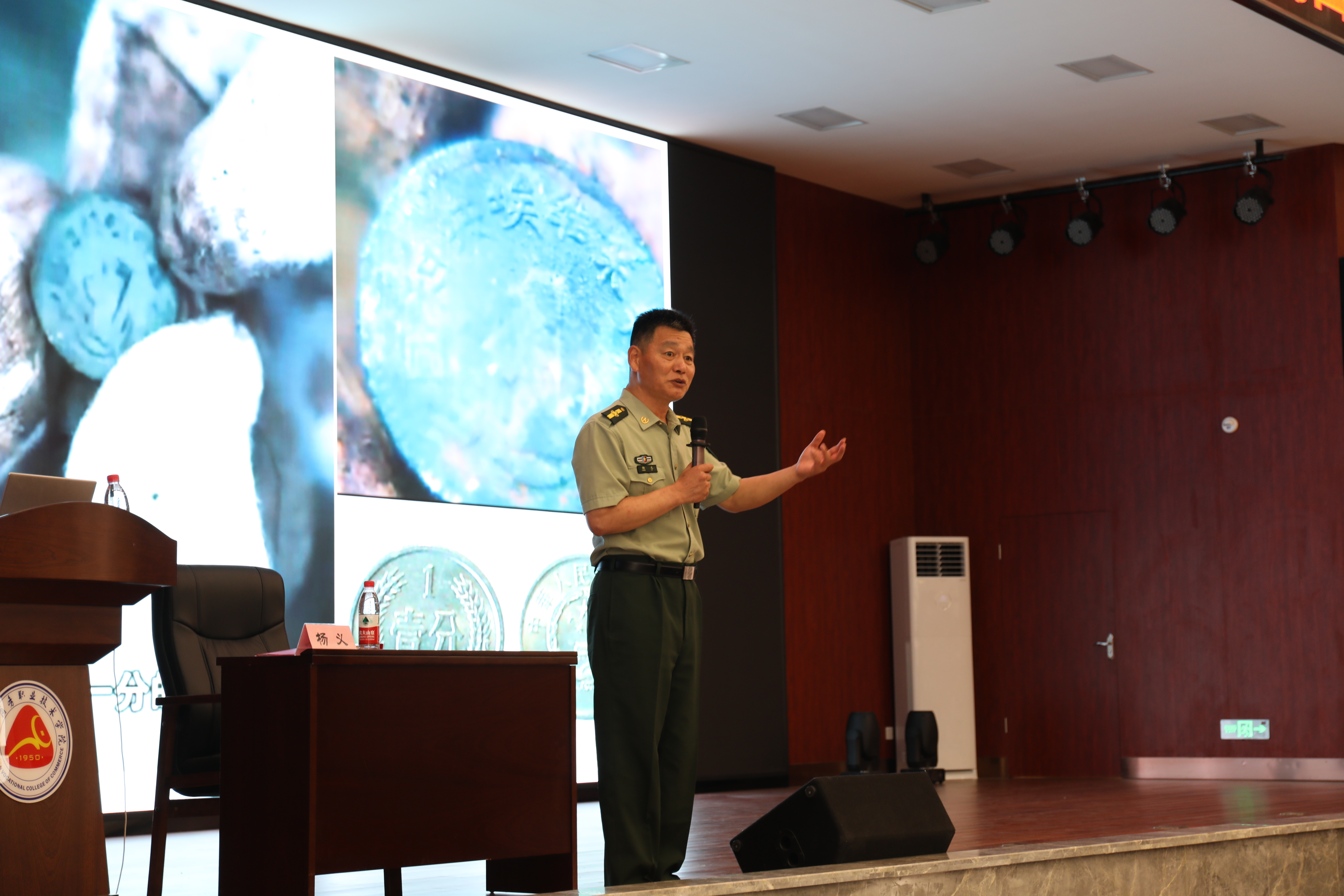 大课首先在讲解员杨娜声情并茂的讲述中拉开序幕,她为同学们讲述了陈树湘师长断肠明志的感人故事。陈树湘师长何以能有如此壮烈之举呢?杨义馆长以《跨越世纪的回电》为题,从一段发现红军烈士遗骸的视频开始,与大家分享了参与挖掘红军遗骸,以及陪同红三十四师后人韩京京将军夫妇找寻陈湘树师长故乡的亲身经历。杨义馆长慷慨激昂地讲述了“红三十四师血洒桂北”、“喋血渡口凤凰嘴”和“绝命护卫、断肠明志”等感人故事,把中国工农红军无惧牺牲的斗争精神,对革命胜利的坚定信念、对党绝对忠诚的优秀品质呈现在师生面前。他呼吁师生铭记先烈功绩,传承红色基因,做好红三十四师在新时代的回电人!
