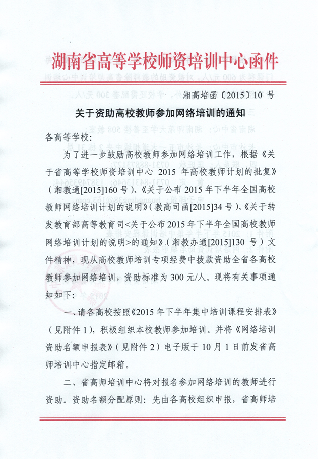 关于资助高校教师参加网络培训的通知