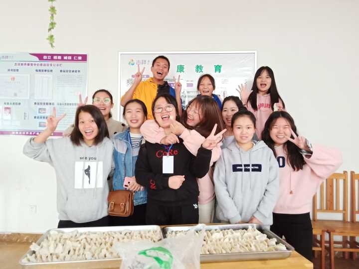与其聊天并表演节目;另一部分志愿者准备包饺子所需工具及馅料;志愿者和老人们一起开始包饺子,期间了解老人们日常生活以及他们的困难;12:30,集合前和老人们一起合影,拍视频以做纪念。