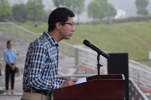大会第一项,升国旗。国旗班所有成员昂首挺胸,在国旗下肃然起敬,五星红旗冉冉升起,全体老师同学都神情庄严,直到国旗升到顶端,老师同学们才将目光转回主席台。大会第二项,学生会副书记李燕代表发言,学生会副书记李燕表示学生在新学期应该有努力的目标,并且要为实现目标而坚持不懈的奋斗。大会第三项,学院副院长廖良林发言。首先,学院副院长廖良林表达了对同学们新学期的期盼,希望同学们在新的学期里依然朝着自己的目标奋斗;接着,廖院长为我们总结了过去一年里我们学校内学生活动的各项事迹,例如学院某学生为其它地区患有白血病的学生捐赠造血干细胞,学院展开的献爱心活动为受难者家庭带来了极大帮助等,无一不表现了我们学校的管理有条不紊,并展现了我们学院学生乐于助人,团结友爱的精神风貌;最后,廖院长表达了对学生的殷切祝愿,希望全院学生在新的一学期里依然努力学习,遵守学校的规章制度,为打造和谐校园共同努力。