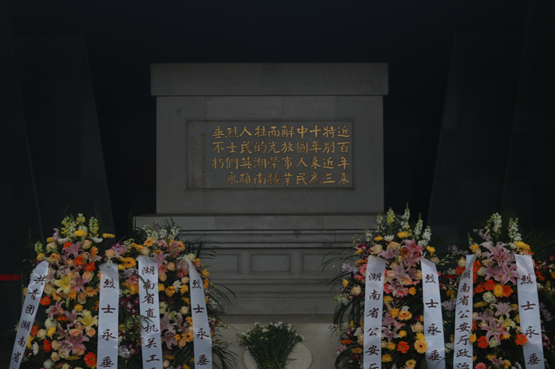 首先全体人员到达第一站:烈士陵园。大道两旁是郁郁葱葱的树木,还有一面面鲜艳的共青团团旗和中华人民共和国国旗,大道尽头就是湖南人民英雄纪念陈列馆。进入陈列馆后,参与活动的领导和同学们列队向先烈敬献鲜花。献完鲜花后,集体向先烈三鞠躬并默哀,表达对革命烈士的哀思与敬仰。参观完湖南人民英雄纪念陈列馆后,参与人员在广场上集体宣誓,合唱团歌。杨明书记讲话中提到:陈列馆中展现的英雄只是一部分,更多的是没有展现出来的英雄烈士。我们这个年代和当年那个年代不一样,所做出的牺牲也是不一样的,我们要拥护党,缅怀先烈,不忘他们的付出。