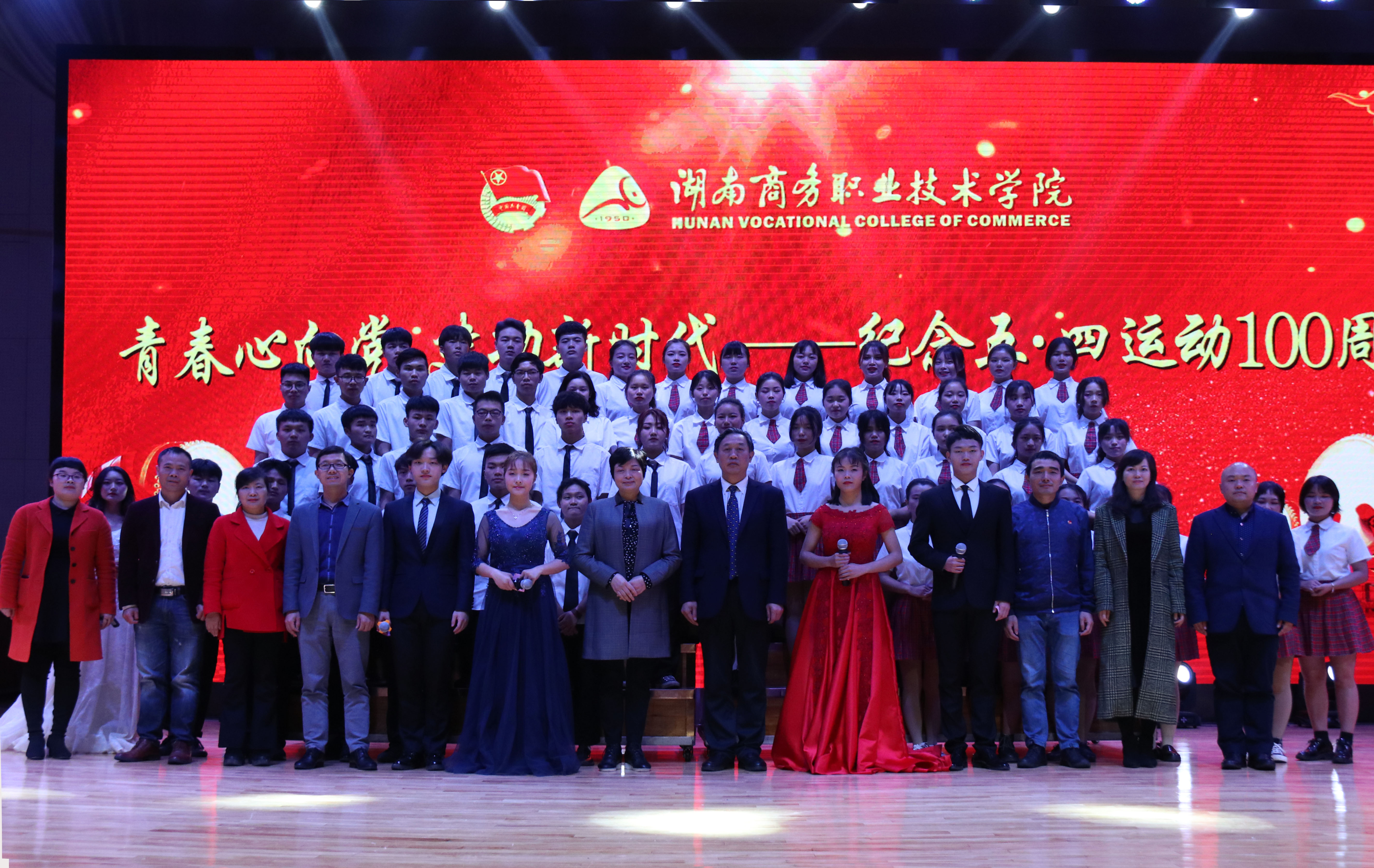 本网讯(通讯员:校网络文化部何晓丽)4月29日晚19:00,由校团委举办的“青春心向党 建功新时代——纪念五四运动100周年”五四表彰颁奖典礼暨社团文化艺术节闭幕式在体育馆隆重召开,到场的领导和嘉宾有:校党委书记周忠新,学校校长李定珍,学校副校长廖良林,党政办公室、学工处、校团委的负责人,各二级学院党总支书记、团总支书记和辅导员老师。