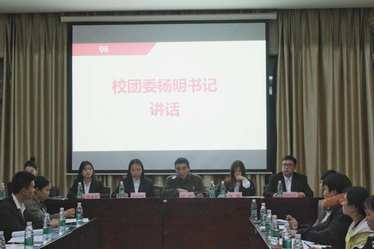 最后校团委杨明书记发表讲话,主要聚焦于各社团质量优化、学生社联管理办法等进行了工作指导。