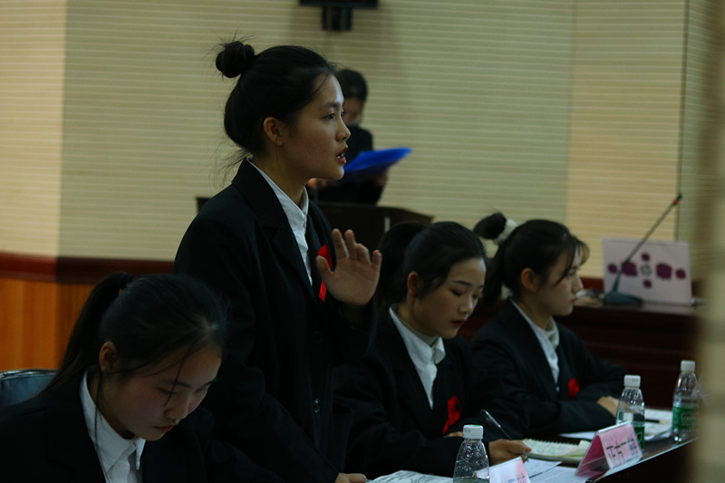 进入决赛的一共有三支队伍,分别是:经贸代表队、会计第二代表队、电商代表队。比赛采取抽签形式进行分组,分两场比赛,由进行两场比赛的队伍决定正反方,最后由评委老师打分取平均分决定成绩。首先进行的是电商(正方)对阵经贸(反方)的比赛,双方就“艾滋病愈演愈烈是医疗水平的匮乏还是教育的匮乏。”这一问题进行讨论,首先由电商提出“艾滋病如果可以治愈,就不会愈演愈烈。”双方经过激烈的答辩直至长哨声响起,第一场比赛才结束。经过5分钟的中场休息后,第二场经贸(正方)与会计二代表队(反方)进行的是“艾滋病患者是更需要精神还是物质支持”的辩论。经贸代表队虽稍显疲态,但他们仍然以饱满的热情开始比赛,并提出“艾滋病患者更需要精神支持。”现场观众聚精会神的聆听,不时传出阵阵掌声。