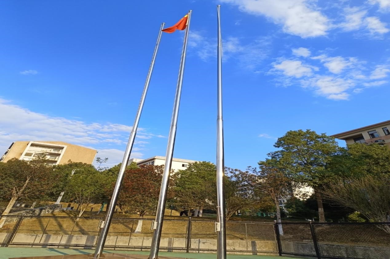 升旗仪式至此结束,太阳日升,五星红旗在风中飘扬,升旗仪式的成功举行,激发了广大师生的爱国情感和责任意识,引领青年学子求是担当,砥砺前行,追求卓越,表达了对伟大祖国的美好祝愿。
