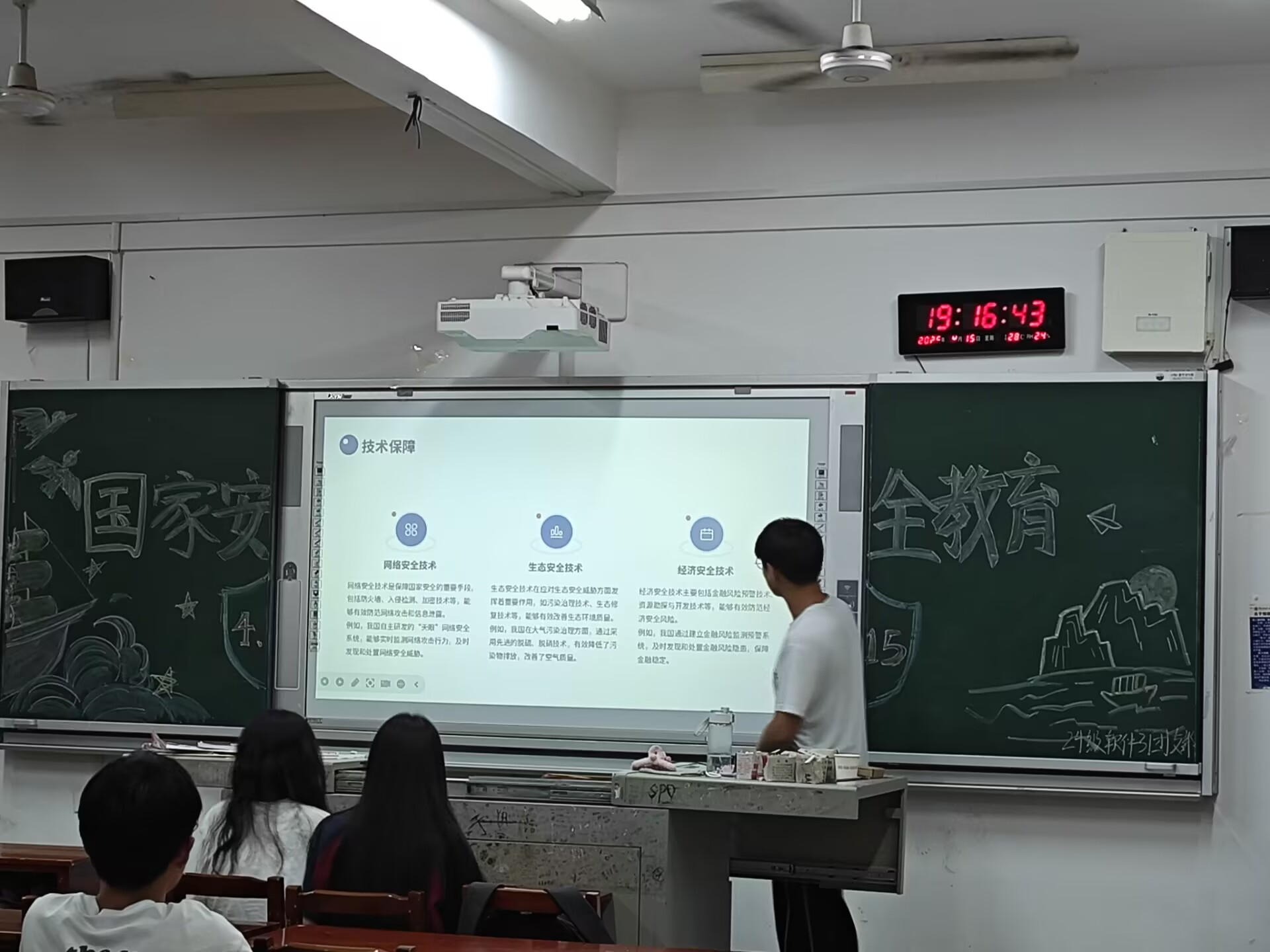 班会接近尾声,一场紧张有趣的国家安全知识问答环节将现场气氛推向高潮。同学们热情高涨,踊跃参与抢答,现场气氛热烈非凡。在你来我往的答题过程中,同学们不仅检验了自己的学习成果,还进一步加深了对国家安全知识的理解和记忆。此次主题班会成效显著,切实提升了学生的国家安全意识和素养,在校园内营造出 “维护国家安全,人人参与” 的浓厚氛围。不少同学表示,通过这次活动,他们对国家安全有了全新的认识,今后会更加主动地关注国家安全动态,并积极向身边人传播相关知识。
