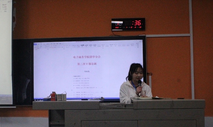 (本网讯:通讯员曹慧玲)为提高我院学生干部的工作能力和综合素质,能更好的服务同学、锻炼自己。电商学院团学分会于2022年3月1日中午13:00在二教110顺利进行了电商学院第五届团学分会第二次干部培训。参会成员为团学分会全体成员。