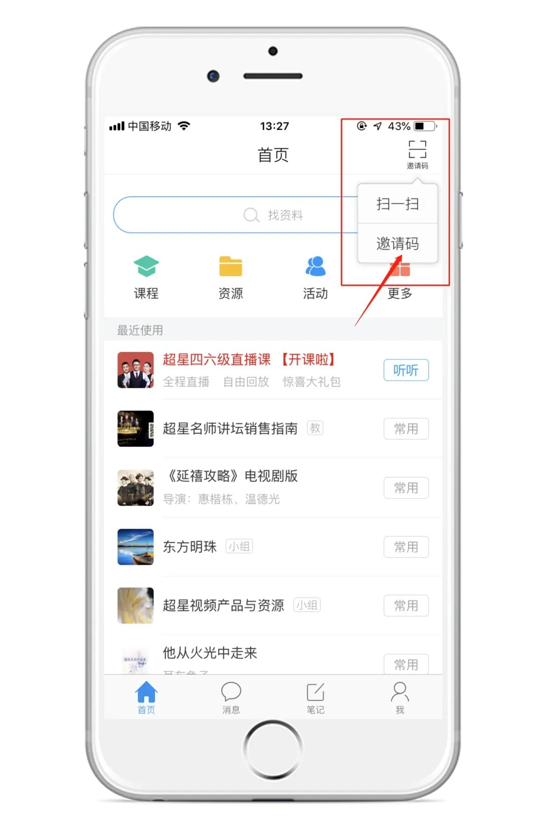 扫描二维码下载学习通或者手机应用市场直接搜索“学习通”下载