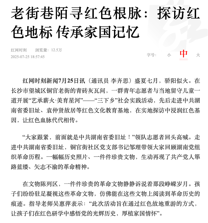 红网报道——老街巷陌寻红色根脉:探访红色地标 传承家国记忆